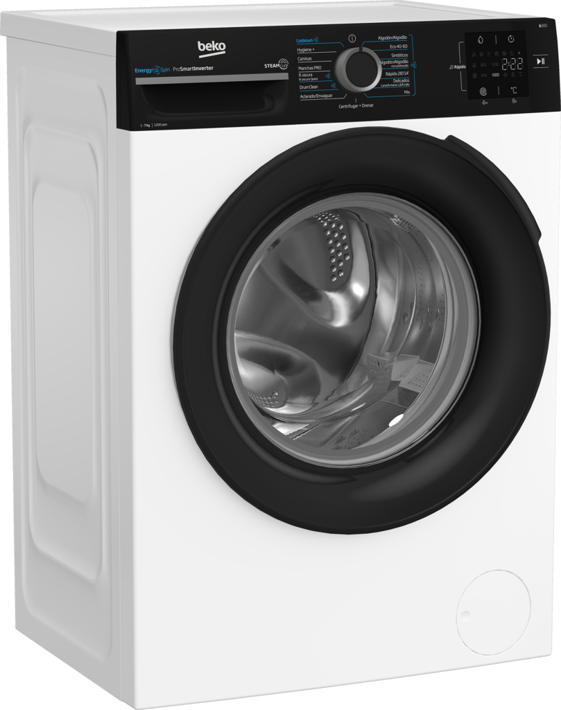 El motor ProSmart™ Inverter garantiza un funcionamiento silencioso, mayor durabilidad y una eficiencia energética optimizada. El tambor de acero inoxidable contribuye a un mejor cuidado de la ropa y a una vida útil más larga del equipo. En conjunto, la Beko BM3WFU3721W es una lavadora práctica y eficaz que combina rendimiento, eficiencia y facilidad de uso.